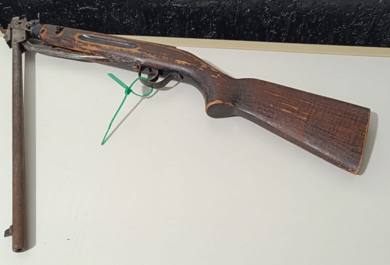 Policiais militares apreenderam uma espingarda calibre 22 milímetros em uma área de mata às margens da BR-163, em Dourados, depois de ouvirem um disparo de arma de fogo e perceberem que uma pessoa correu para o local.