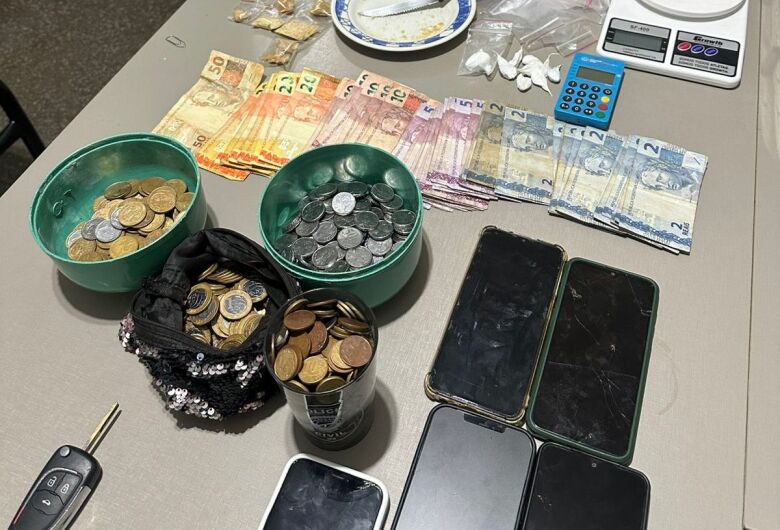 No local, os policiais apreenderam porções de cocaína e pasta base já fracionadas para comercialização, além de 80 sacos plásticos do tipo “zip”, comumente usados para embalar drogas, uma máquina de cartão de crédito, quatro celulares e R$ 801 em espécie, entre cédulas e moedas. Segundo a investigação, os materiais reforçam indícios da prática de tráfico.